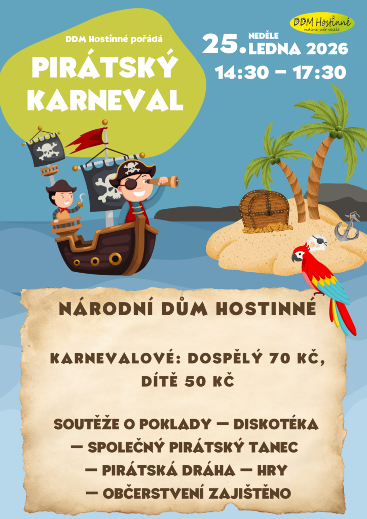 Soutěže o poklady, diskotéka, společný pirátský tanec, pirátská dráha, hry, občerstvení zajištěno.